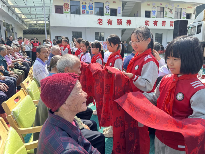 ▲溪口村“一老一小幸福院”开展敬老活动。摄影丨江西日报全媒体记者陈璋