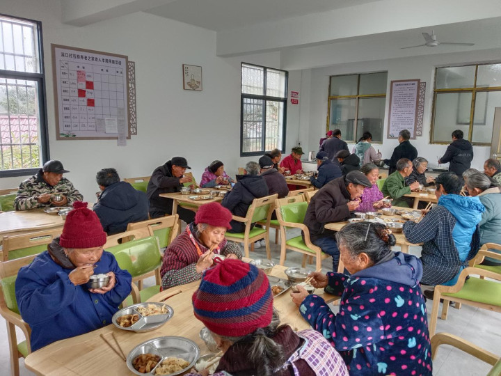 ▲溪口村“一老一小幸福院”的老人们正在用餐。摄影丨江西日报全媒体记者陈璋